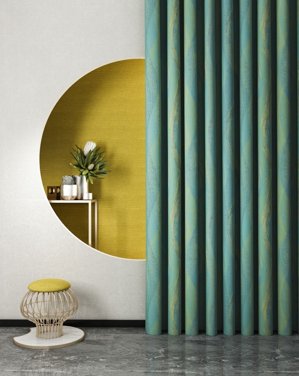 帝國(guó)黃高明度,高飽和度,明快活潑,幸福感爆棚。它不含紅或綠的色彩,是極為純正的黃色。作為空間強(qiáng)調(diào)色,主要體現(xiàn)在布藝上,作為皇室色彩,帶著與生俱來(lái)的高貴氣質(zhì)。作為秋冬最奢華的主題色,打造完美家居空間必不可少。